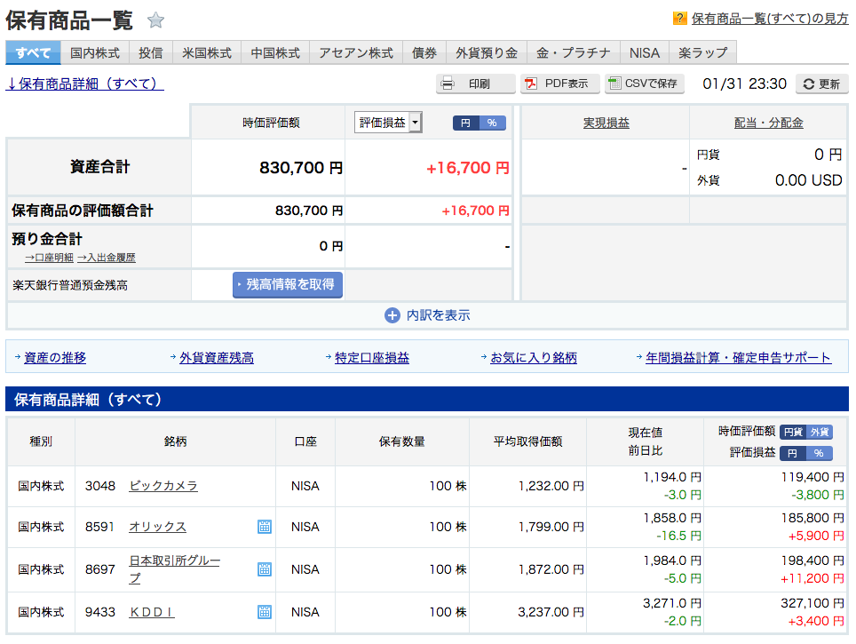 楽天証券の例として、途中経過をご覧頂ければと思います。